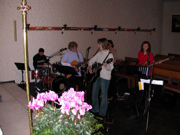 spielten gemeinsam mit der neuen Kaltenwestheimer Jugendband das Lied "Gott