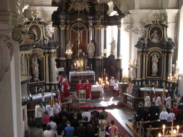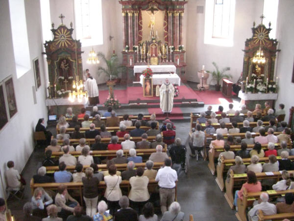 Festhochamt total überfüllt. Es konzelebrierten Pfarrer Arnold, Pfarrer