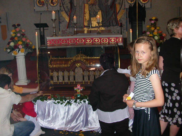 Therese. Dann kam der große Augenblick: Der Reliquienschrein wurde von den